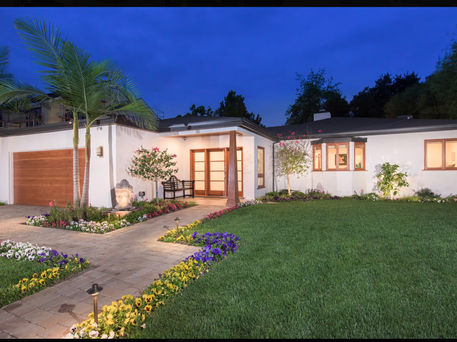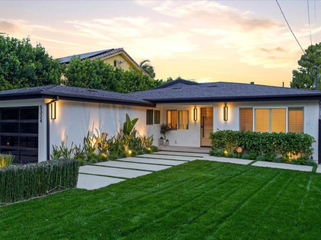 What started as a vision became this — a seamlessly integrated garage addition that looks like it was always meant to be there. Clean white stucco, bold black trim, modern glass garage door, and landscape lighting that glows like golden hour every night.